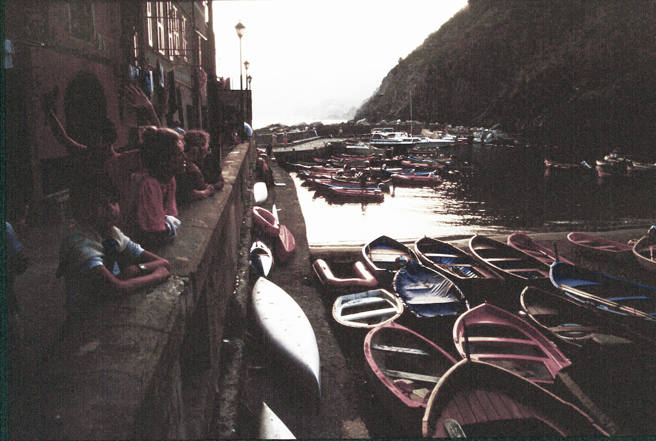 Une fois, en 1985, profitant du petit train qui relie comme un métro toutes les communes des cinq Terres, j’ai essayé ce « petit cabotage » de nord à sud, arrivant en deux étapes jusqu’à Vernazza, ce lieu mythique, très ressemblant à Portofino, que ma sœur m’avait fait connaître deux ans avant. La vue depuis la mer de cette sorte de camaïeu ou diamant rose reste sculptée dans ma mémoire comme une espèce de profanation, ne faisant qu’un avec la sensation d’une découverte scandaleuse et interdite. Mais, pour exploiter cette prouesse, pour ne pas y devoir renoncer, j’avais accueilli dans l’espace exigu de Mimì mon ancienne belle-sœur et quatre enfants dont le plus petit avait déjà onze ans ! La mer était calme, lisse comme une table, le moteur ne donnait aucun signe de fatigue, le réservoir d’essence était plein. Et pourtant, le maître nageur qui nous aida à tirer la barque sur la rive du petit port naturel nous admonesta : « la mer tue, comme les cigarettes. Vous êtes des inconscients ! » Il ne s’adressait qu’à moi…