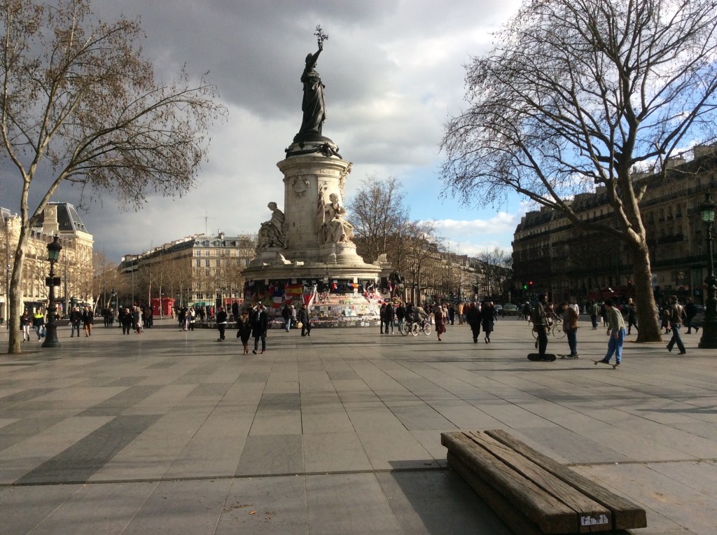 En fait, pendant ma fabuleuse et tout a fait enrichissante traversée de ce monde en partie nouveau pour moi, je me suis progressivement affranchi de mon “devoir de nostalgie” envers mon pays d’origine, en me considérant au fur et à mesure comme un apatride, un citoyen du monde, un sympathisant de l’Europe, jusqu’au jour où j’ai eu la nette sensation d’être devenu parisien. Ce jour a coïncidé avec les plus terribles traumatismes que la France ait pu connaître: les tueries de Charlie Hebdo ainsi que la nuit d’horreur du Bataclan et des rafales de mitraille ayant tué des gens assis à la terrasse des bars. Mais je suis devenu parisien aussi avec la géniale transformation de la grande place autour de Marianne, la statue symbolisant la République ne faisant qu’un avec l’esprit de citoyenneté : une chose forte, tangible à Paris, beaucoup plus que dans les autres capitales du monde. Sous mes fenêtres j’ai vu, tous les samedis, s’écouler dans le boulevard les fleuves des manifestations, dont quelques-unes ont été particulièrement imposantes, comme la grande manif on ne peut plus spontanée et touchante du 13 janvier 2015… Depuis cette année 2015 la vie de nous tous a changé, avec la prise de conscience d’une escalade dans les tensions mondiales qui menaçait directement Paris, la France et l’Europe. En “citoyen parisien” j’ai ressenti dès le début la désagréable sensation d’un “décollement annoncé” entre un passé contradictoire — mais foncièrement inspiré aux principes de la Tolérance, de la Solidarité ainsi que de la fonction stratégique de la Culture et de l’Art, tout cela sous l’inébranlable abri de la Liberté — et un présent-futur gouverné par l’Égoïsme et la Peur, piégé sans répit par le double tranchant du mot Sécurité.